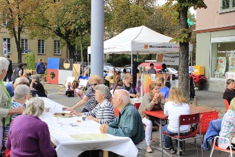 Dieses Jahr war einiges besser: das Wetter grösstenteils war herbstlich-schön, und wir feierten auf dem schon seit einigem Monaten teilweise verkehrsfreien Bullingerplatz.