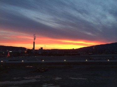 Ein farbenprächtiger Sonnenaufgang über der Güterbahnhofbrache.