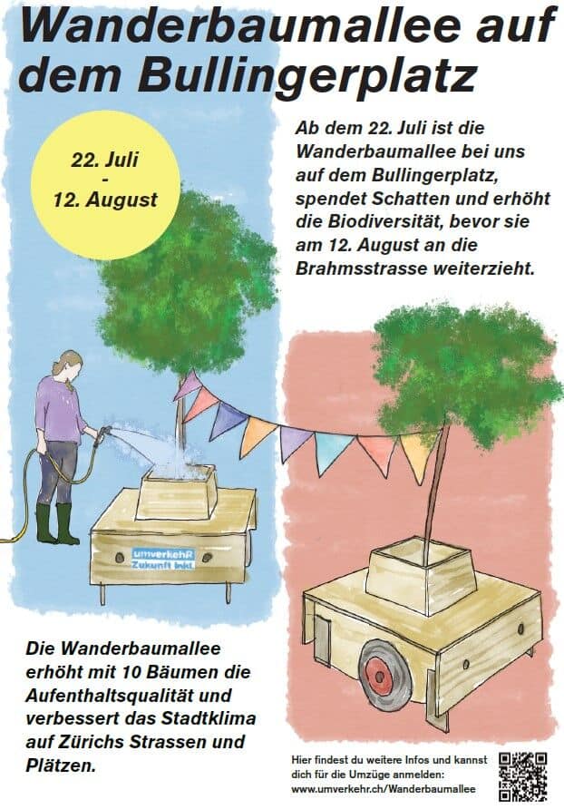 Mehr Bäume in der Stadt? Umverkehr legt los! Bäume senken durch Schatten und Verdunstung die sommerliche Hitze um bis zu 10 Grad. Mit den Stadtklima-Initiativen wollen sie deshalb mehr Platz für Bäume in den Städten freimachen. Ab dem 22. Juli bis 12. August ist die Wanderbaumallee bei uns auf dem Bullingerplatz, spendet Schatten und erhöht…