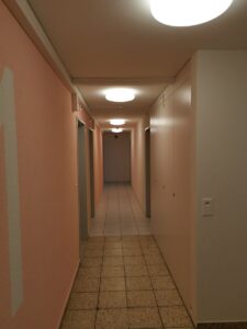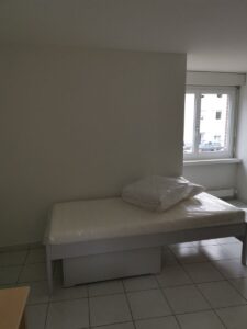 Ent­spre­chend der kaum vor­han­de­nen Res­sour­cen der Ziel­grup­pe beschränkt sich das Ange­bot im Pro­jekt «Beauf­sich­tig­te Wohn­in­te­gra­ti­on» auf die Über­wa­chung des Gesund­heits­zu-stands der Bewoh­ne­rin­nen und Bewoh­ner sowie auf die Sicher­stel­lung der Zugangs­kon­trol­le zum Haus. Zudem sorgt das ganz­jäh­rig und rund um die Uhr anwe­sen­de Fach­per­so­nal mit Aus­bil­dung im Bereich Psych­ia­trie­pfle­ge oder Sozia­ler Arbeit für die Ein­hal­tung mini­ma­ler hygie­ni­scher Stan­dards sowie die strik­te Ein­hal­tung der Haus­ord­nung, die neben Dro­gen­han­del und Pro­sti­tu­ti­on zum Bei­spiel auch gemein­schaft­li­chen Sub­stanz­kon­sum verbietet.